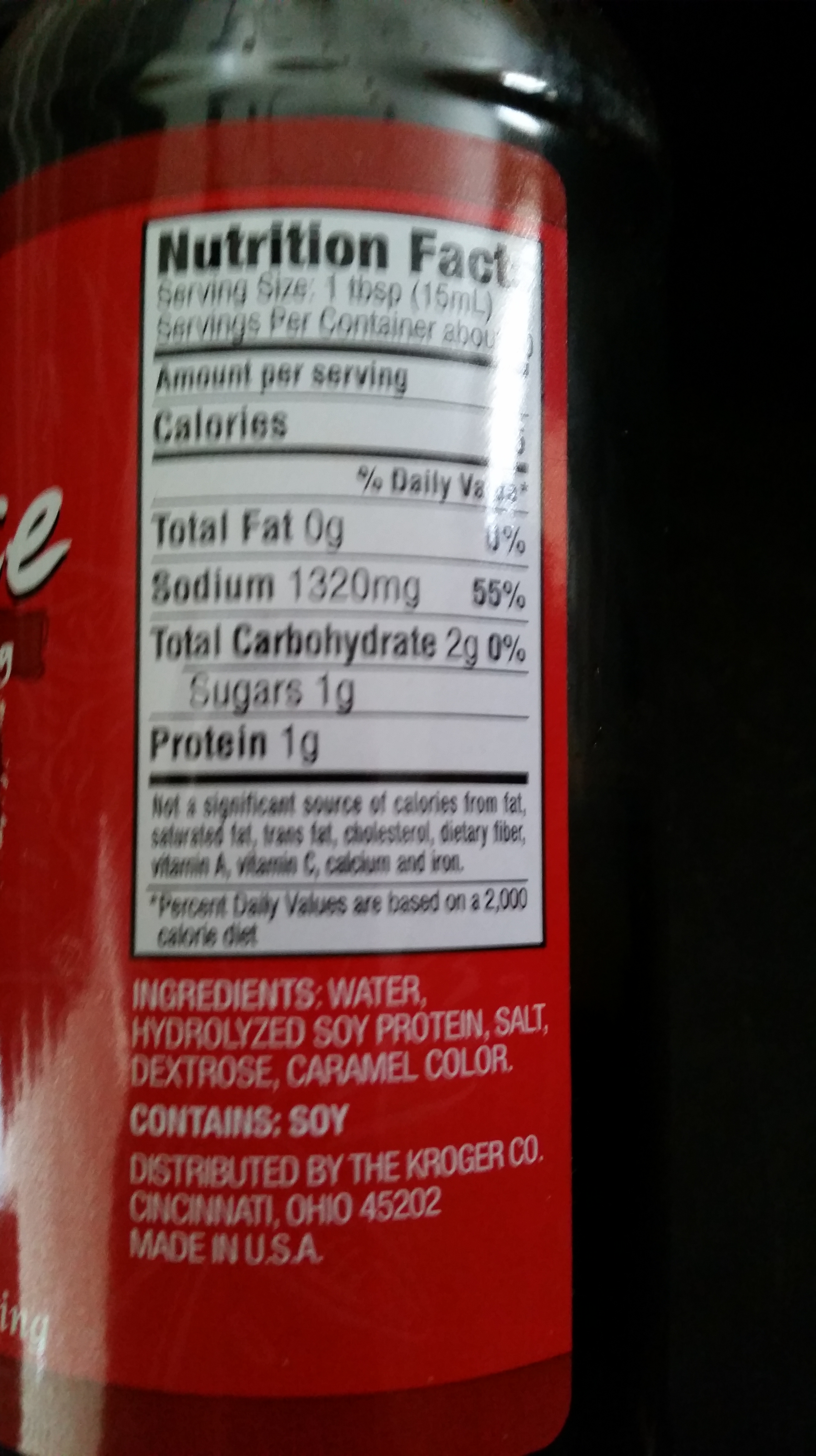 Although it’s not quite the same flavor as regular soy sauce, it’s a good substitute. You’ve gotta love the ingredients: Organic coconut sap aged and blended with Sun-Dried, Mineral-Rich Sea Salt. That’s it! Ever read the label on a bottle of regular soy sauce??? Don’t have one handy? Well, here’s one from my cupboard: