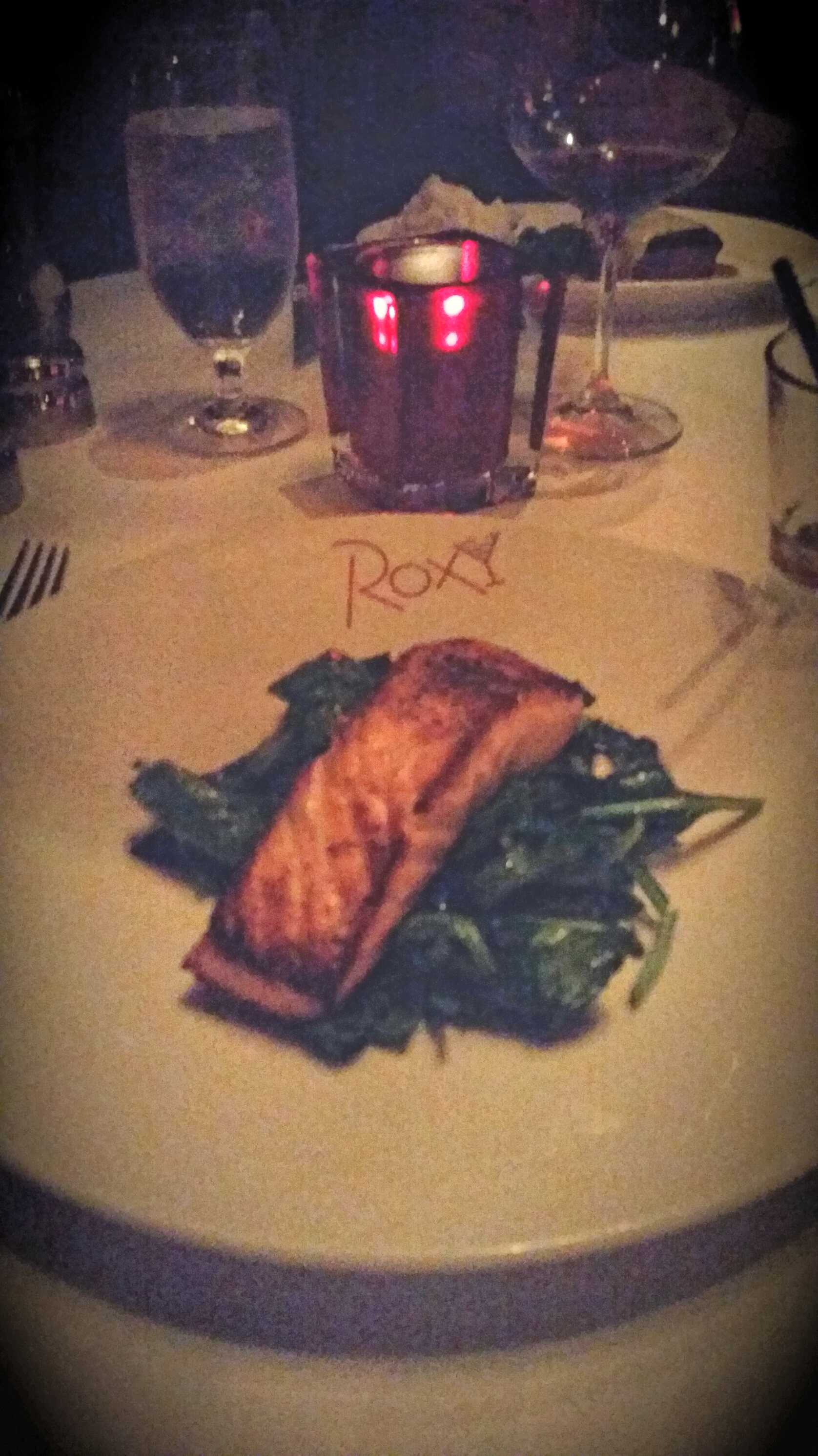 Upon being greeted with a smile, the hostess found me a table quickly and had me seated. Roxy is dimly lit, which is preferable to me since I’m old, and my wrinkles show less in low light. 😉 However, it does make it a tad difficult to read the menu. Not a problem for me since I have a flashlight app on my phone. (Always prepared!) As always, I’d found a menu ahead of time to check out the fare before I arrived, so I had a sense of what was printed there.