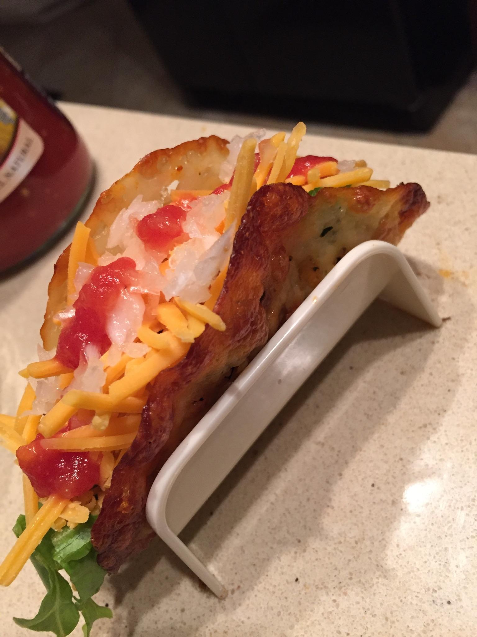 20151026_163822Allow to cool, and repeat the process until all your provolone slices are made into taco shells.